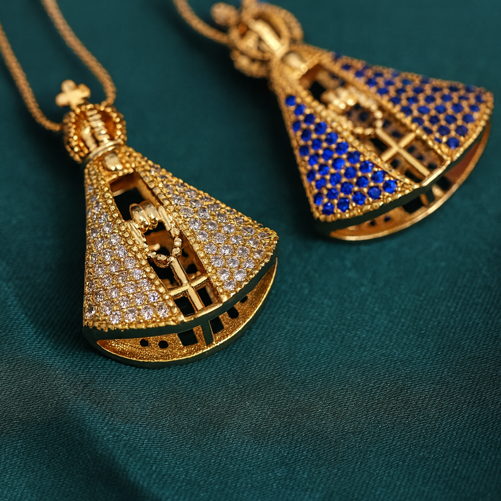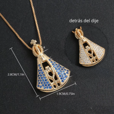 El Collar de la Virgen con Piedras de Circonia Azul, Bañado en Oro es una pieza de joyería única que combina la devoción con la elegancia. Su diseño detallado y su acabado en oro de alta calidad lo convierten en un accesorio perfecto para ocasiones especiales. Además, el toque de las piedras de circonia azul le aporta un brillo sutil pero sofisticado, lo que lo hace ideal para complementar diversos estilos y atuendos.