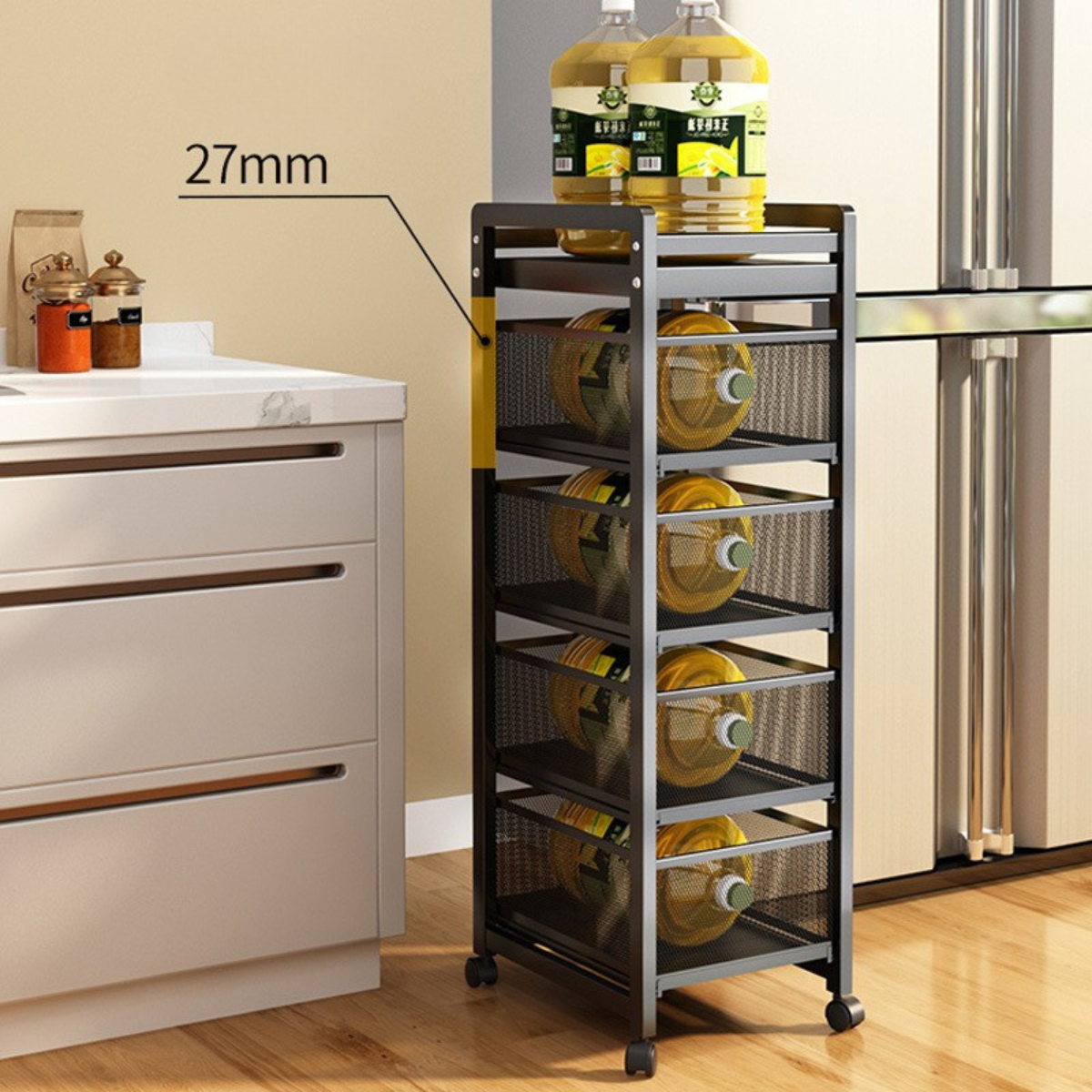 El SmartRack fue diseñado pensando en mujeres que aman el orden, pero no quieren resignar belleza. Su estructura metálica negra con acabado satinado le da un toque sofisticado, mientras sus canastos extraíbles hacen que todo esté al alcance de la mano, de manera práctica y visualmente armónica.